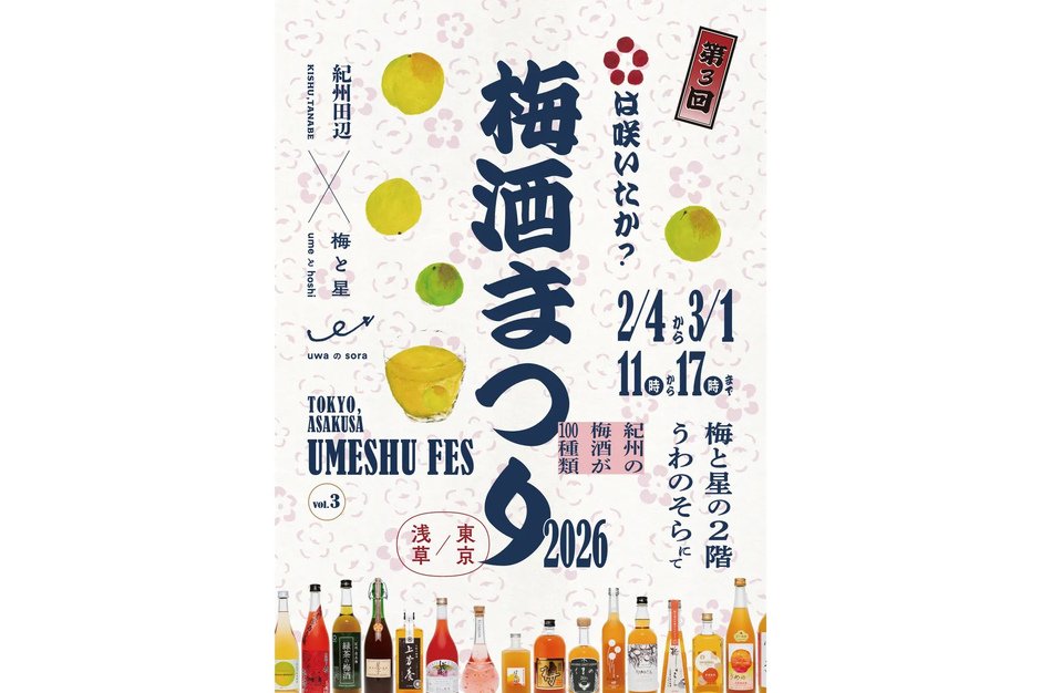 可以尽情享用和歌山县绝品梅酒100种的『纪州梅酒祭2026』今年也将在浅草的「梅と星」举办!