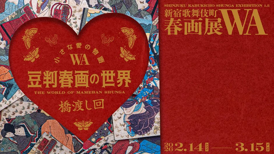 在“『北斎・英泉 艶くらべ ー歌舞伎町花盛りー』 新宿歌舞伎町春画展WA 第二回”之前,将于2026年2月14日(周六)至3月15日(周日)举办“『小小的爱之物语——豆判春画的世界——』新宿歌舞伎町春画展WA 过渡展”。