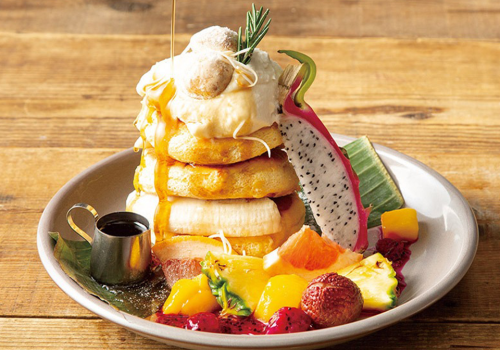 以充足的东京产新鲜鸡蛋烘烤而成,口感松软的舒芙蕾松饼。可搭配焦糖坚果和时令水果等,多种风味任您享用。