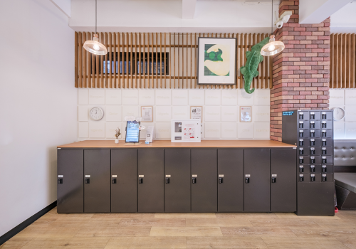 宽敞的休息区配备电源插座和 Wi‑Fi,非常适合远程办公或安排行程。各楼层设有淋浴间、洗漱间、卫生间和密码锁储物柜,并配有付费洗衣房(带烘干机)、自动售货机、微波炉、共用冰箱和饮水机等。完善的设施也非常适合长期入住。