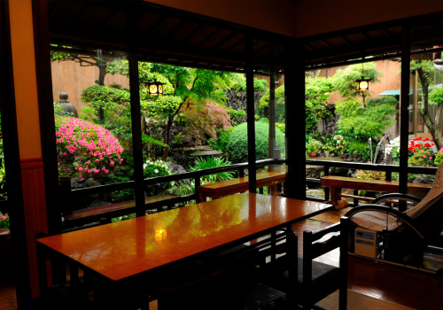 在引以为傲的日式庭园中,可以观赏优雅游弋的锦鲤和以五月杜鹃花为代表的四时花木;出浴后在缘侧乘凉的时光,堪称至福。