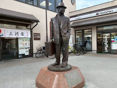 走出柴又站,首先映入眼帘的是提着手提箱的寅次郎铜像。“不在这里拍照就不算来过柴又。”路过的一对夫妇这样告诉我们。确实,许多游客都在这座铜像前合影留念。
